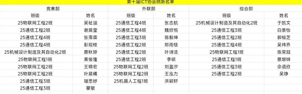 附《厦门华厦学院第十届ICT协会新干事成员》