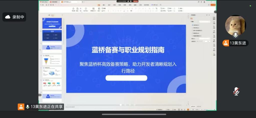 为聚焦蓝桥杯Web应用开发赛道备赛策略,助力相关专业学生系统规划入行路径,12月6日19时30分,由王美金、黄梅红老师组织的“蓝桥备赛与职业规划指南”线上指导会正式举行。会议邀请了陈坤阳、黄东进两位优秀学长围绕蓝桥杯备赛策略与行业入行路径作专题分享,相关专业学生参加了此次针对性极强的指导活动。
