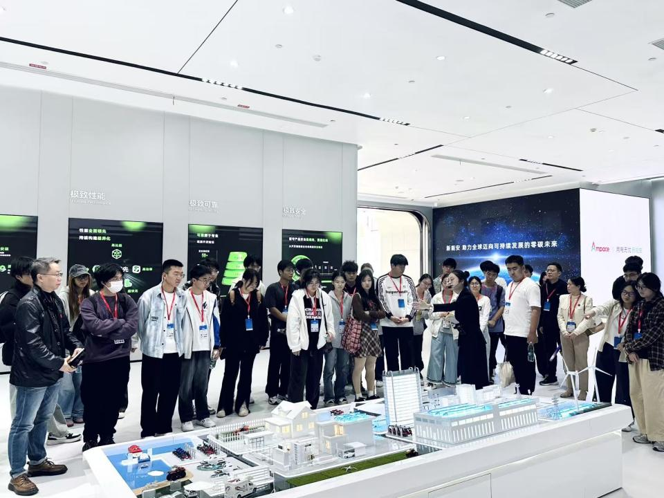 抵达企业后,新能安的代表热情接待了参访师生。在他们的引导下,老师代表及学生代表们参观了企业的历史发展展厅跟公司的办公区域,近距离的感受企业严谨高效的工作氛围。“以极致用户体验的绿色能源解决方案,助力能源转型,赋能美好生活。”是新能安科技的发展愿景。通过观察电池制造的过程,让同学们对职业场景有了更真切的认知。