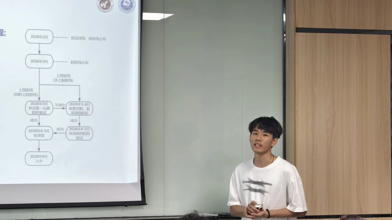曾在部队荣立集体二等功的卓勇勇同学,今年免初试进入厦门大学复试,因此他对复试环节进行了细致入微的讲解。从如何精准把握复习重点,到面试过程中的礼仪细节与应答技巧,再到专业知识考察时的应对策略,他均倾囊相授。他特别强调,复试既是专业知识的考核,更是心理素质的比拼,鼓励同学们在复试中以从容自信的姿态,充分展现专业素养与学术潜力。分享最后,他用“考研是一场持久战,坚持到最后就是胜利”这句话,激励在场同学不畏艰难、勇敢追梦。