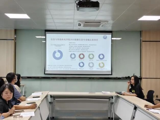 紧接着,学生第一党支部书记董雨婕围绕新生报到数据分析、新生班会主要流程、入学材料收取清单等进行了深入剖析和详细讲解,帮助与会教师精准把握工作要点,确保迎新各项任务顺利开展。